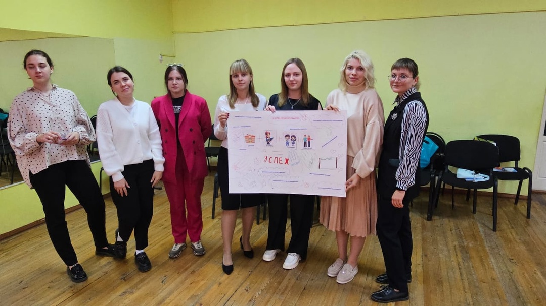 Команда во главе со спикером - учителем начальных классов, советником директора по воспитанию Кокоткиным А.М. провели тимбилдинг «Секрет успешного педагога», где молодые специалисты выстроили для себя формулу успешного учителя!